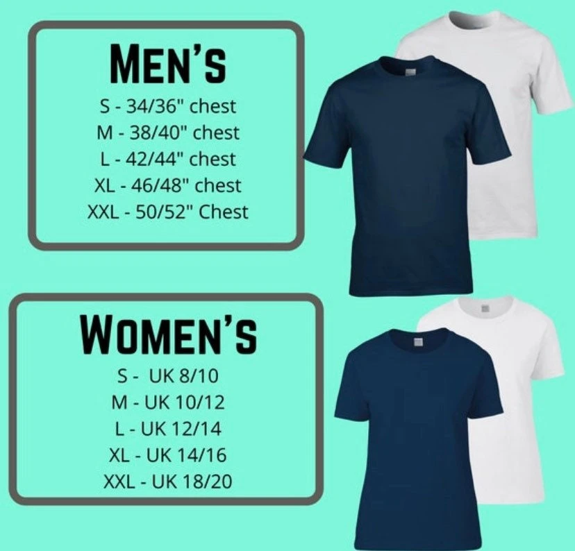 Please note that there are no XS in Mens and Womens tshirts so if an XS option is chosen then a Small tshirt will be sent.