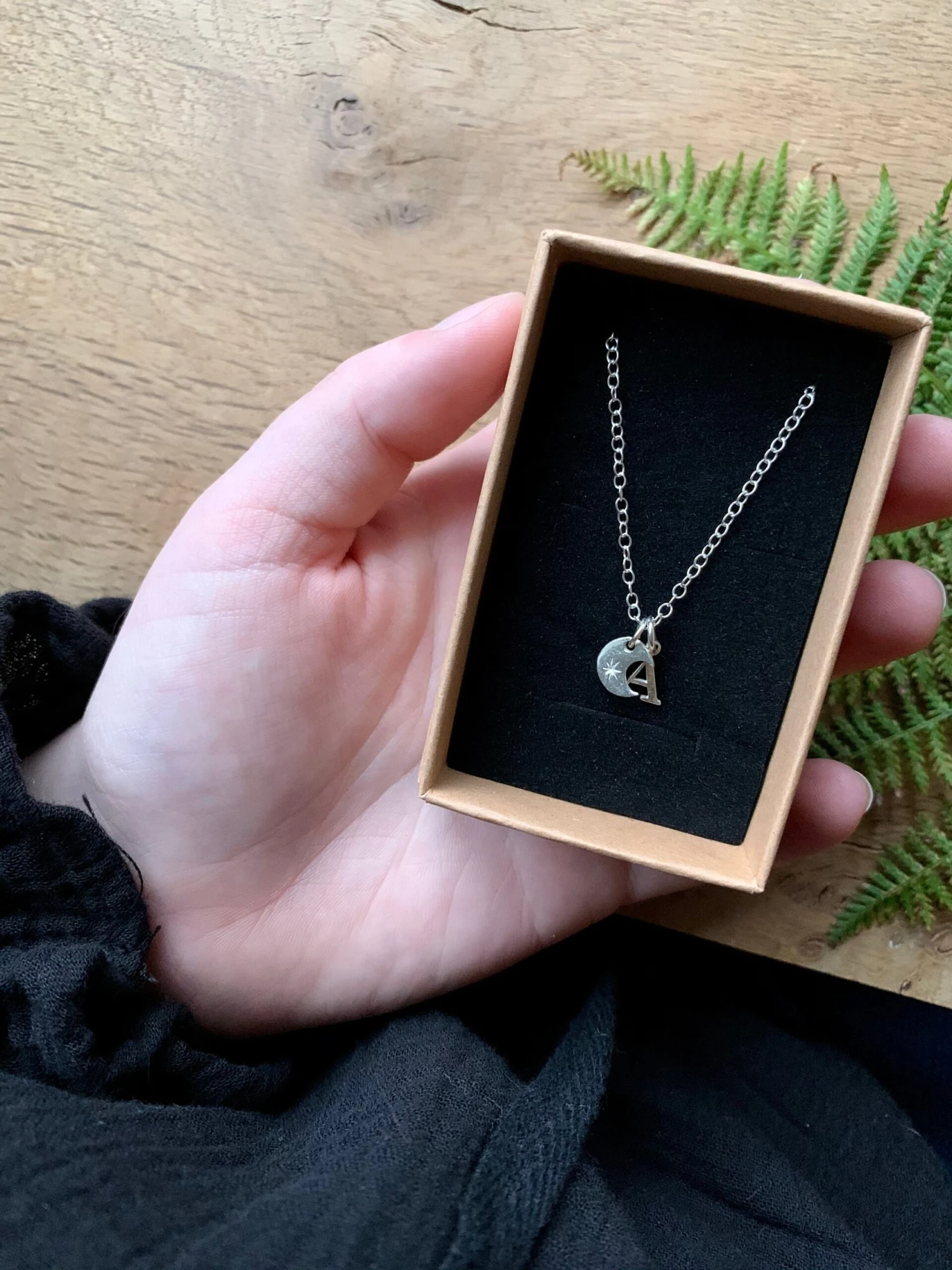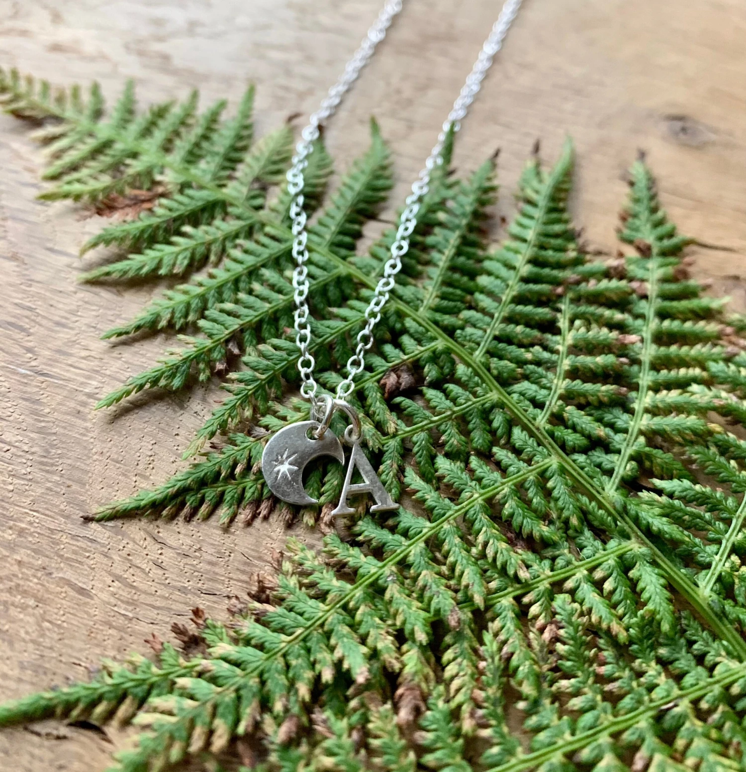 Crescent Moon & Initial Sterling Silver Necklace. This is a delicate, simple necklace with a crescent moon charm and the initial/initials of your choice. All charms sit on an 18” sterling silver chain. I do have other chain lengths in stock so if you would prefer a longer or shorter chain just let me know! Please select the number of initials you would like in the drop down box and leave the initial/ initials of your choice in the personalisation box. All necklaces include a little brown gift box wrapped with string, so they are ready to be gifted!