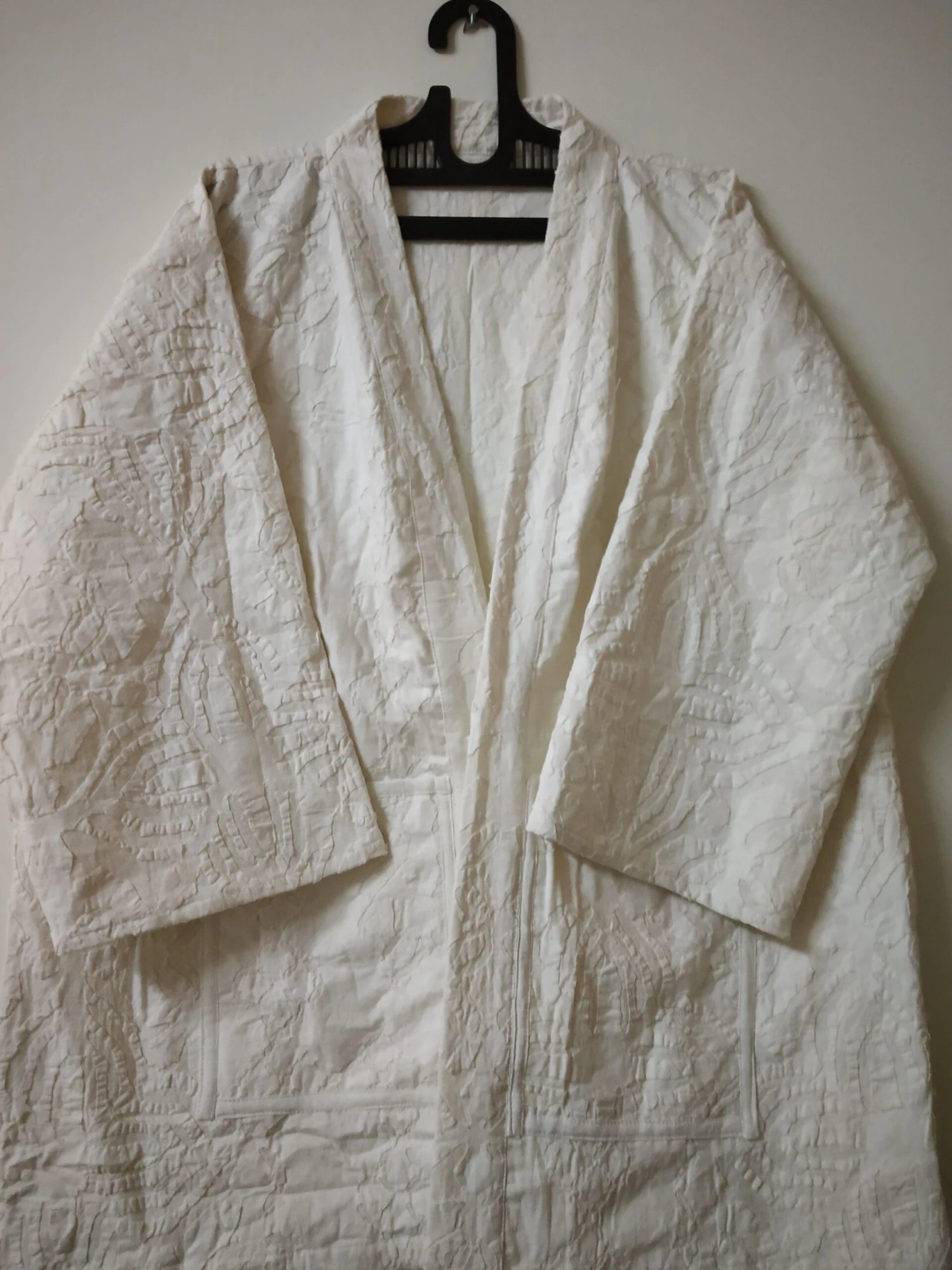 Cutwork Short Winter Kimono Robe, Indian Cotton Cutwork Women Jacket coat, White Handmade Cutwork Beach Kimono For Christmas Gift for Mom