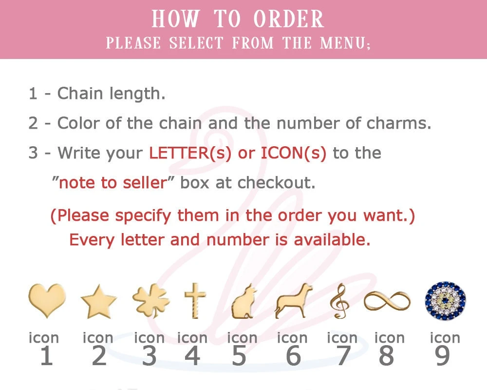 Note: Evil Eye itself is considered as a charm. If you would like to evil eye with your other desired initials and icons, please don’t forget to count it as a charm and mention your evil eye with other charms. THE LAST DATE FOR Mothers Day ORDERS