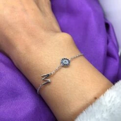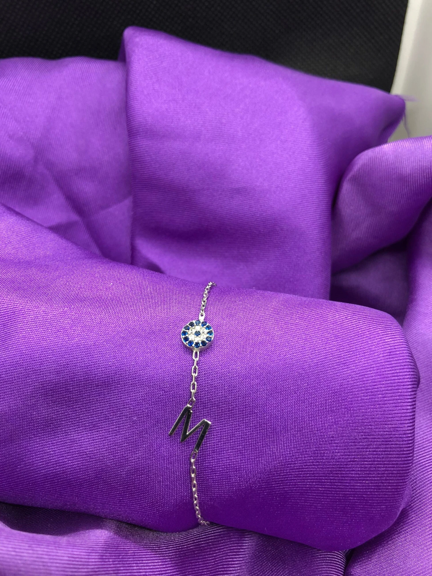 Gorgeous Sideways Evil Eye Bracelet: made of Sterling Silver. As it is s wonderful everyday jewelry, this brilliant evil eye charm is a perfect gift for a best friend or any beloved ones. You will receive many compliments!