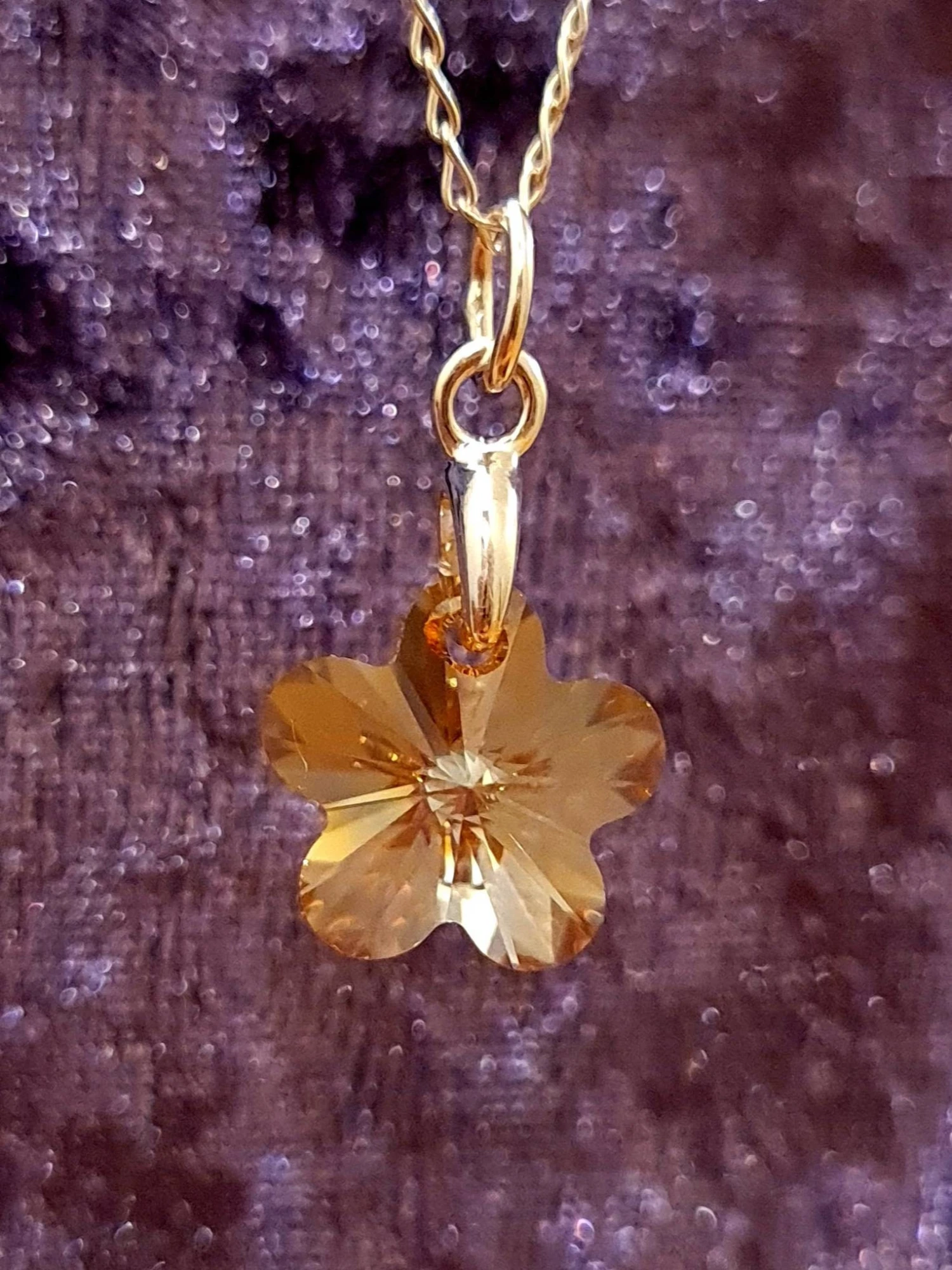 This stunning, handcrafted necklace is made from genuine Crystal from Austria. The beautiful Golden Shadow Flower pendant is suspended on a delicate 18”(45cm) or 20″ (50cm) 925 hallmarked, Solid Silver chain. NOT silver plated.