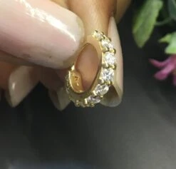 14Kt Yellow Gold Clear CZ Heart L Bend Nose Ring, Valentines Day Or Christmas Gift For Your LOVE