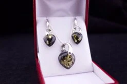 Amber Heart Earrings , Green Amber Heart Earrings , Amber Earrings For Her, Christmas Amber Jewelry