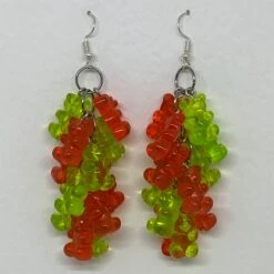 Red Green Christmas Gummy Bear Dangle Waterfall Earrings Colour Hooks , 9 Cm Long ( 3.5 Inches )