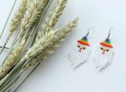 Small Santa Earrings,Beaded Holiday Earrings,Christmas Gift For Her