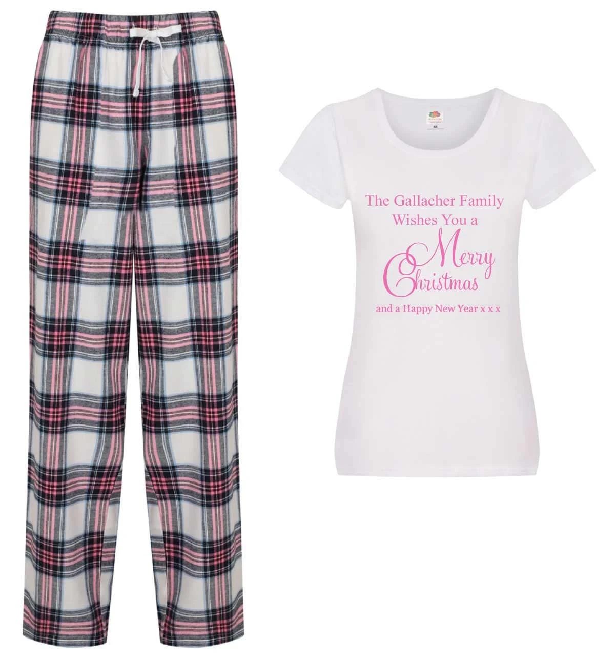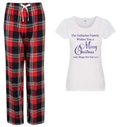 Tartan Trousers Personalised Family Christmas Pyjama Set Available in 3 Colours