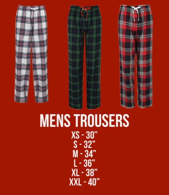 Red / Navy or Green/Navy tartan pattern pyjama bottoms with short sleeve navy top.