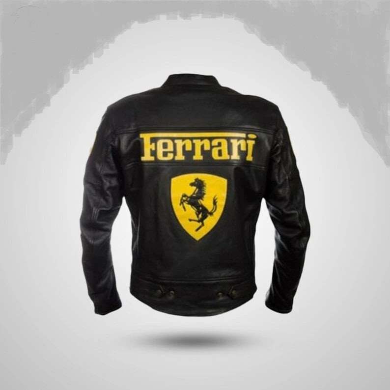 Men’s Ferrari Black Genuine COWHIDE Leather Moto Racer Casual Biker Jacket, Christmas Gift for Biker