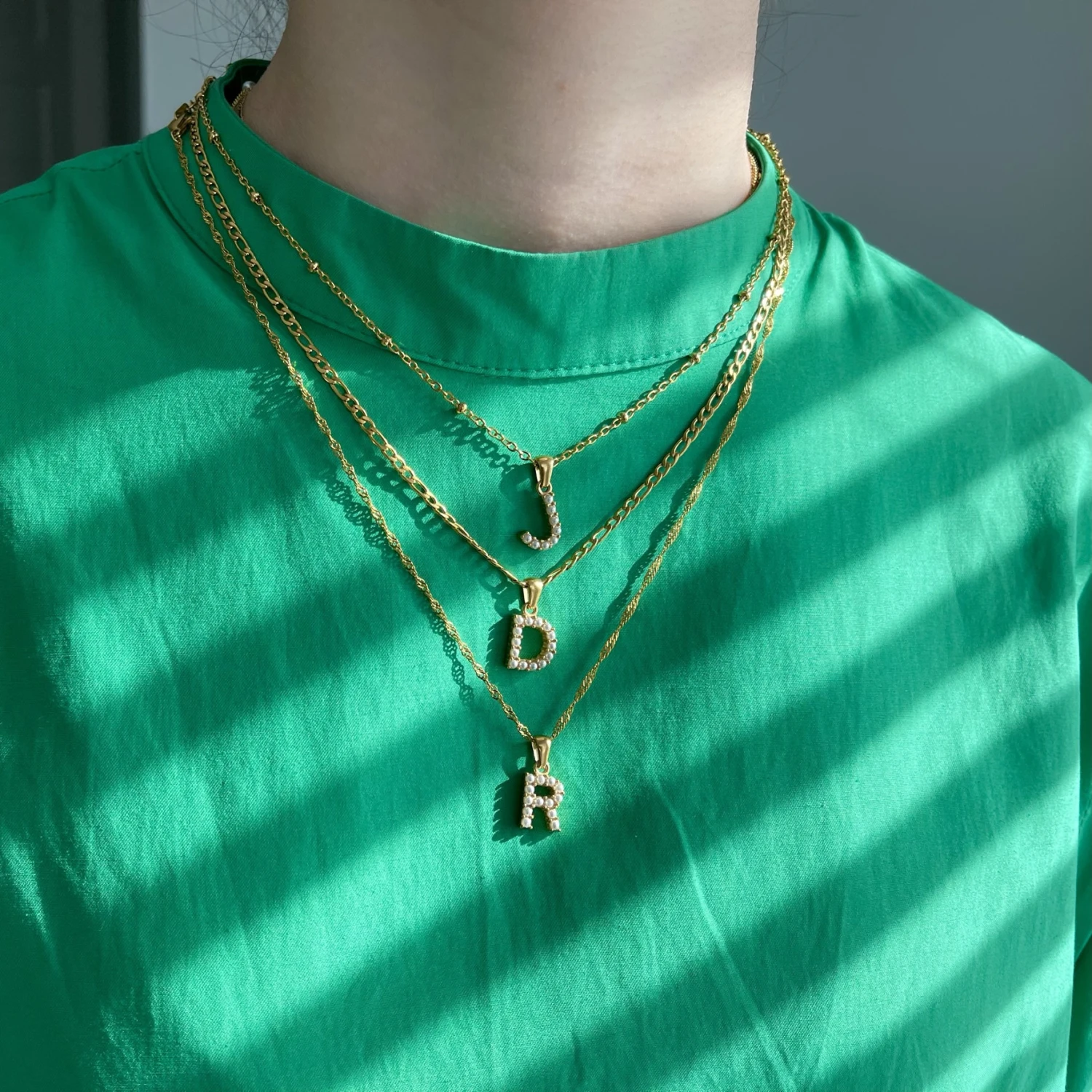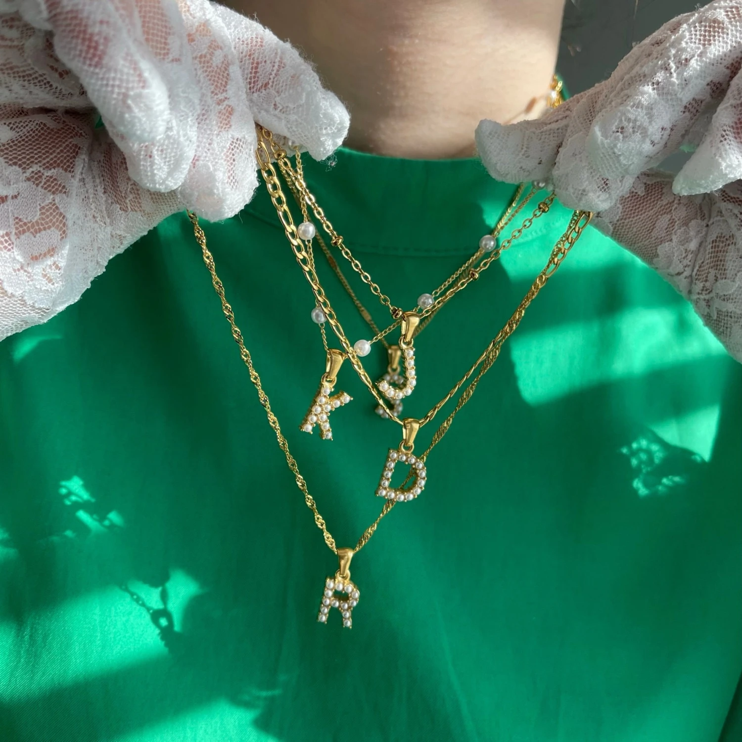 Pearl Initial Necklace Gold Name Necklace Freshwater Pearl Letter Pendant Layering Necklace WATERPROOF Jewelry Christmas Gift for Her