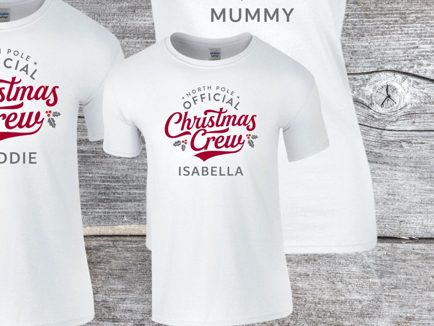 Christmas crew is a set design which can be personalised for each family member such as Mummy, Daddy, Auntie, Uncle, or child’s name.