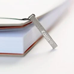 Personalised Men’s Brushed Silver Bar Necklace with Modern Font Engraving