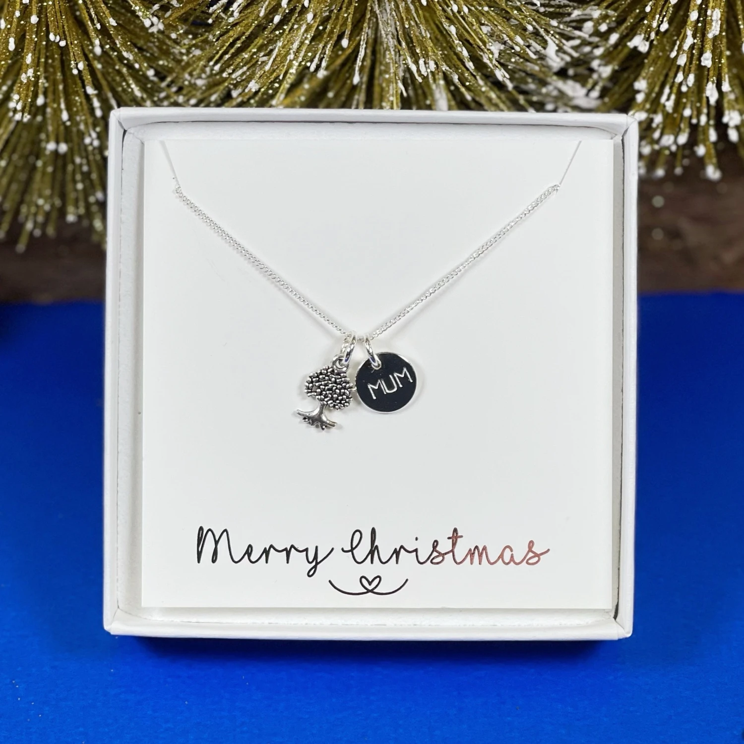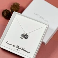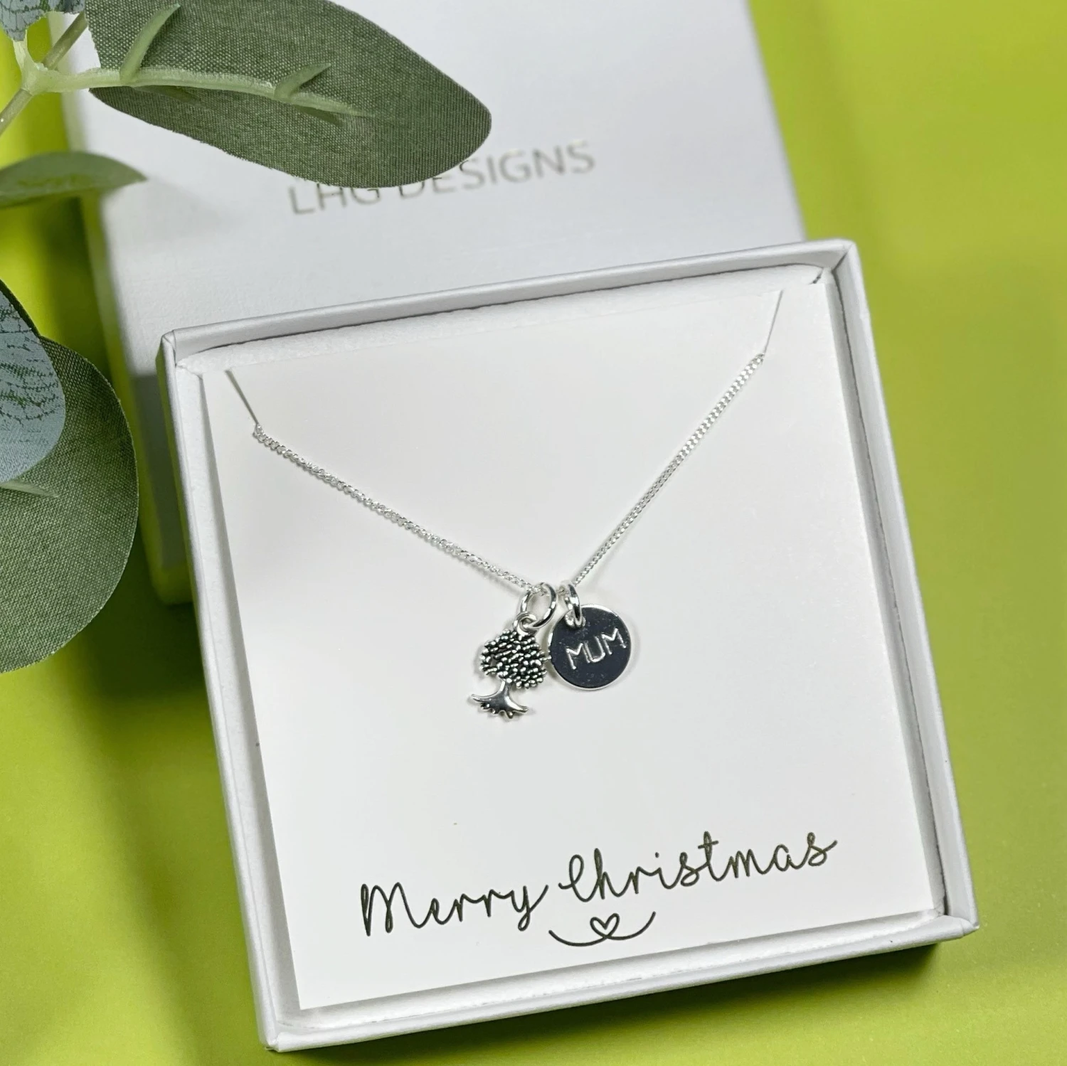 Personalised Tree of Life pendant necklace with hand stamped name on the pendant disc.
