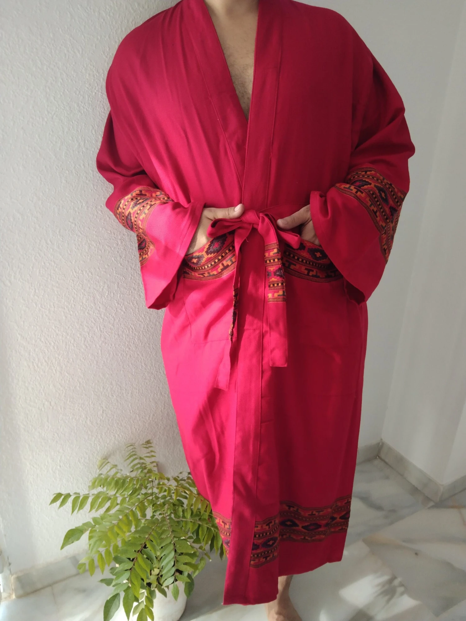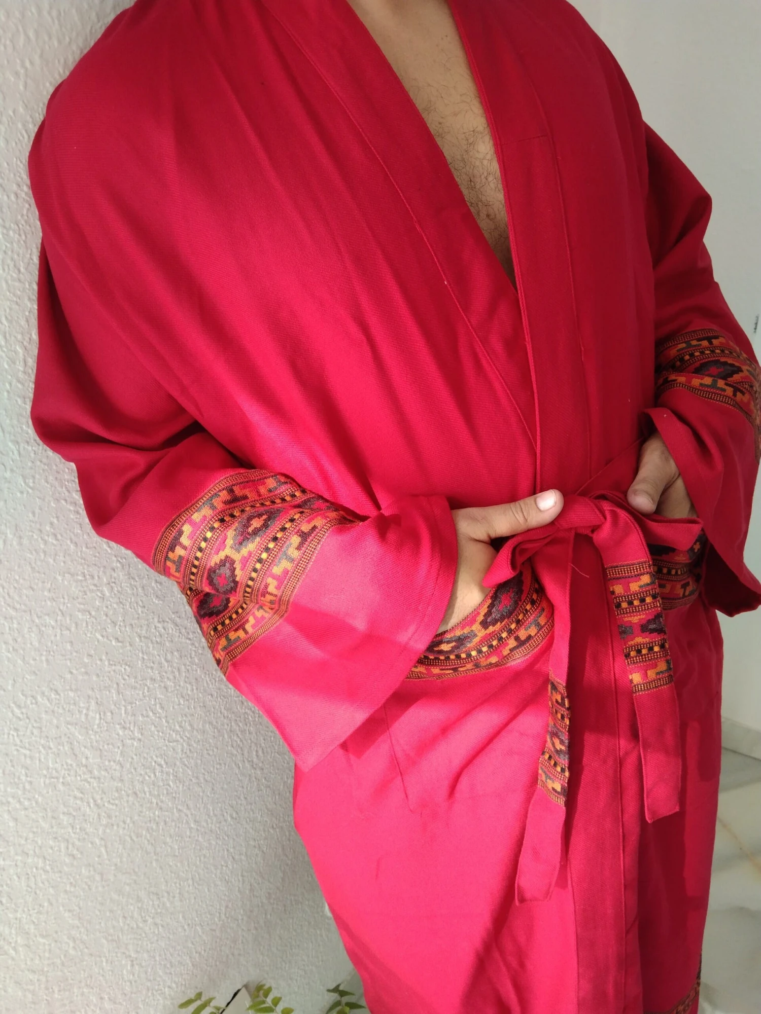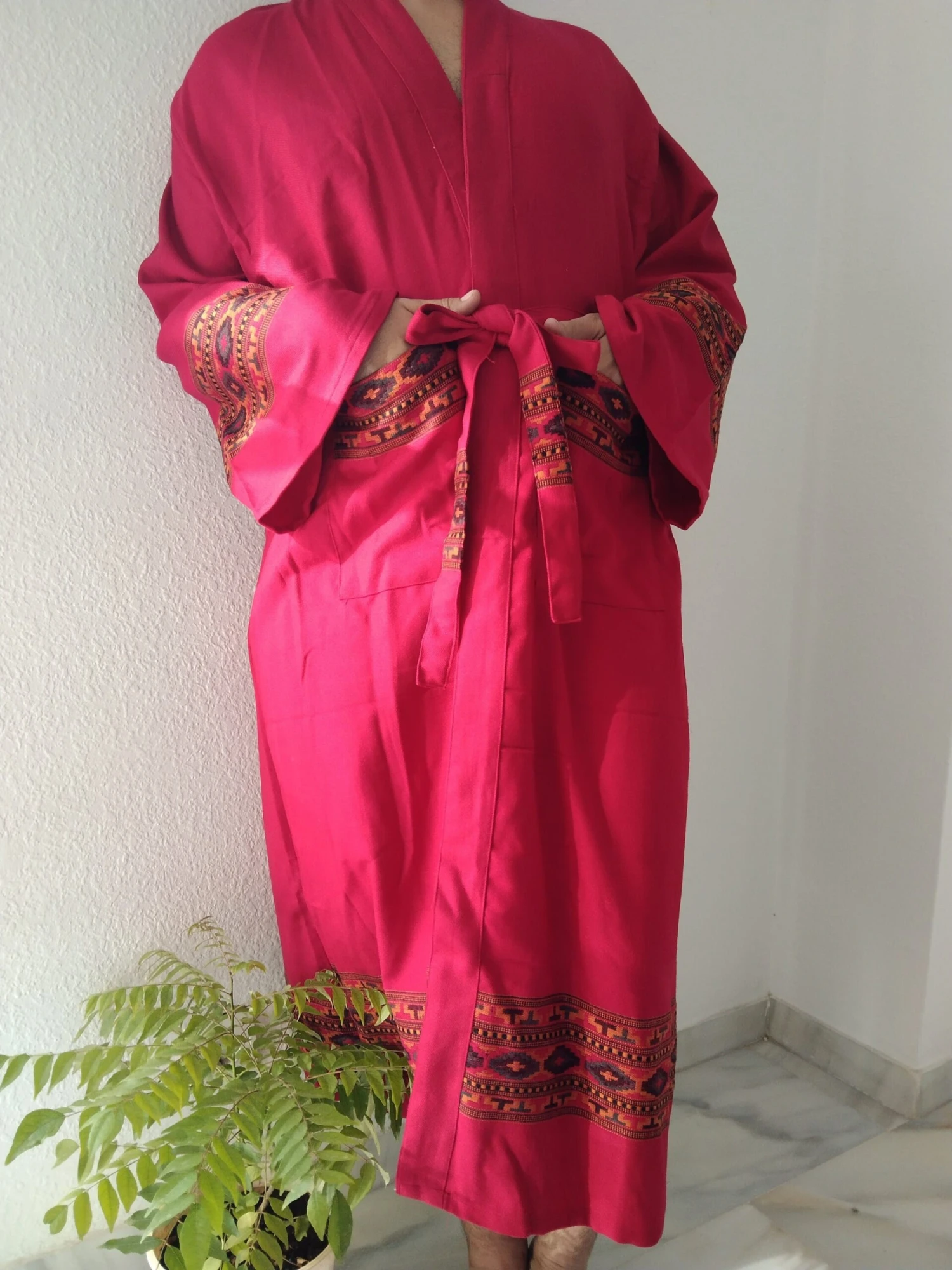 Wool and acrylic blend robe. Has the feel of thick cotton