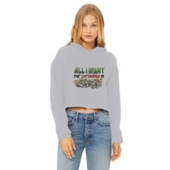 All I Want For Christmas Is Money Ladies Cropped Raw Edge Hoodie