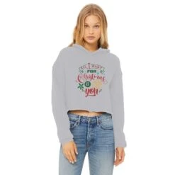All I Want For Christmas Is YOU Ladies Cropped Raw Edge Hoodie