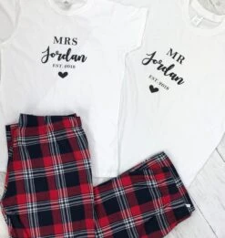 Couple/ Family Pyjamas Newly Weds, Family Autumn Christmas Loungewear. Matching Personalised.